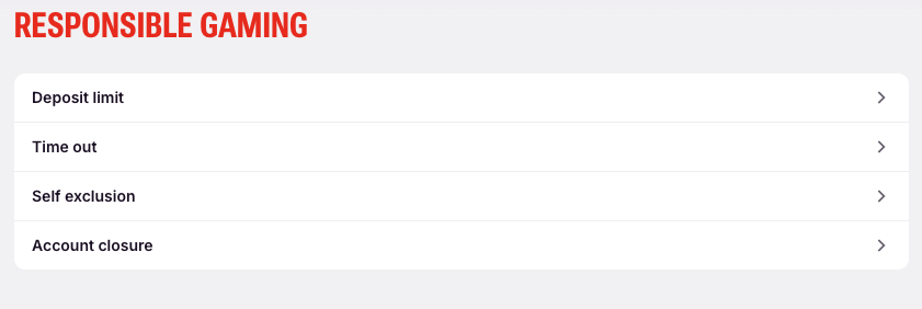 Click on “Responsible Gaming”.