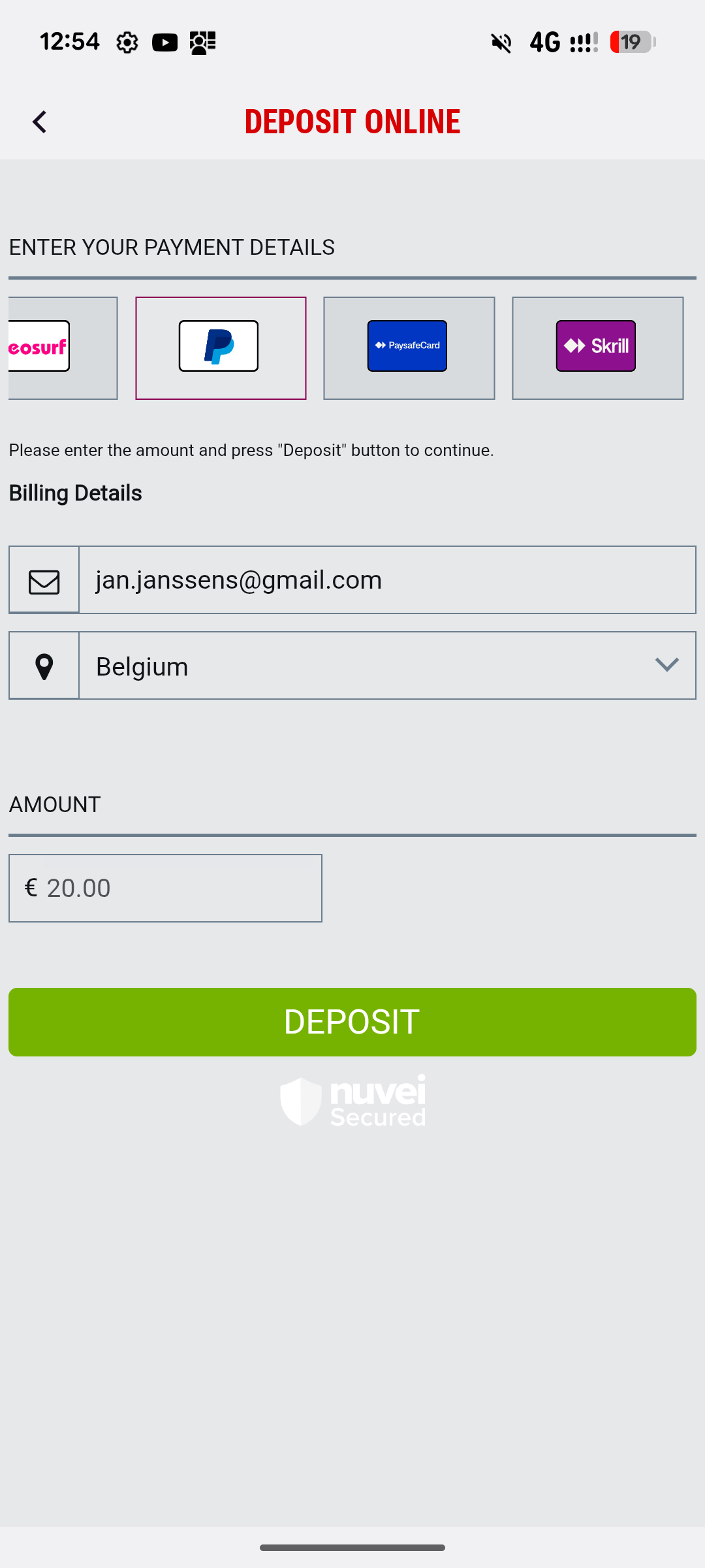 4. Click on the the PayPal icon on top of the screen and enter your details. To confirm, click on ‘DEPOSIT’.