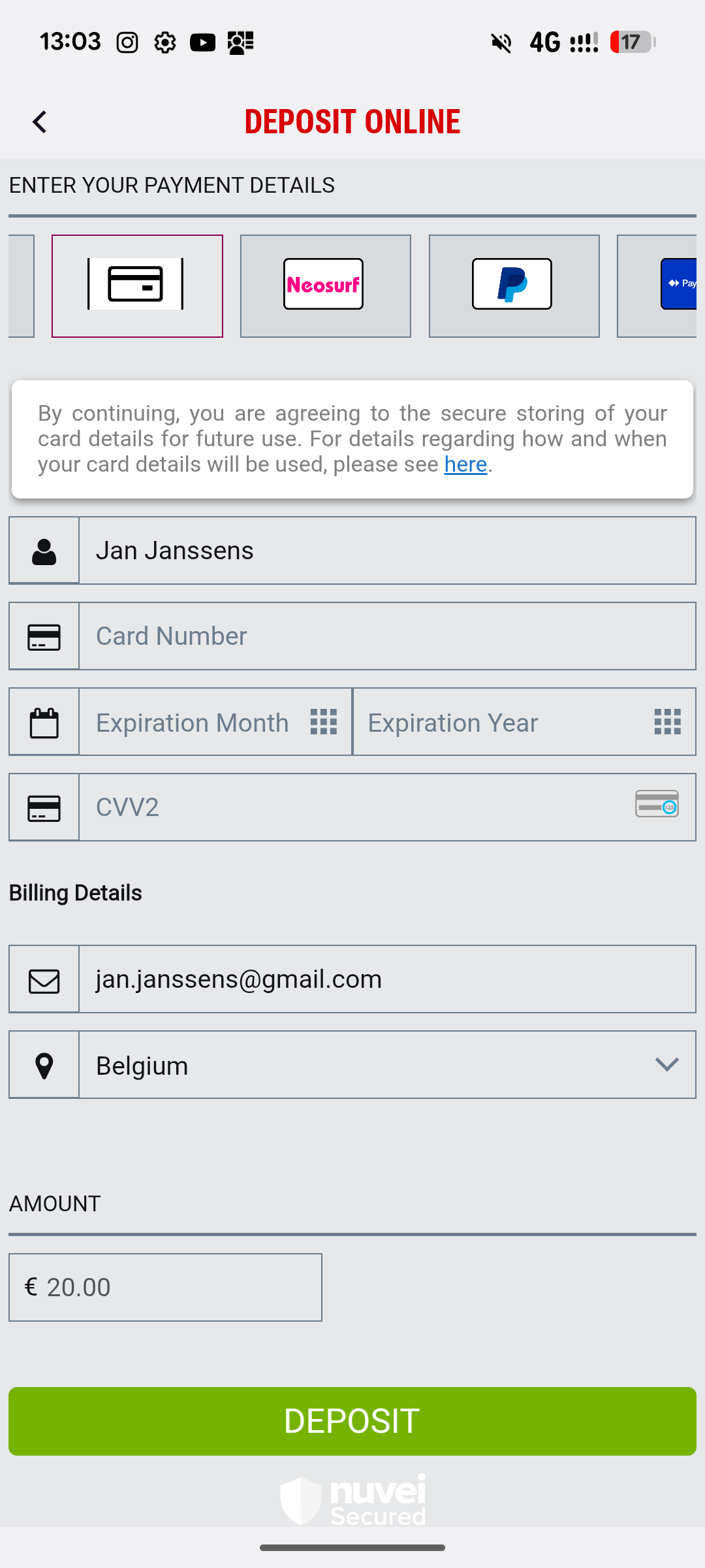 For some cards, you will be asked to confirm the transaction with a code you receive from your bank via SMS. It is important to pass the correct information to avoid problems when making your deposit.