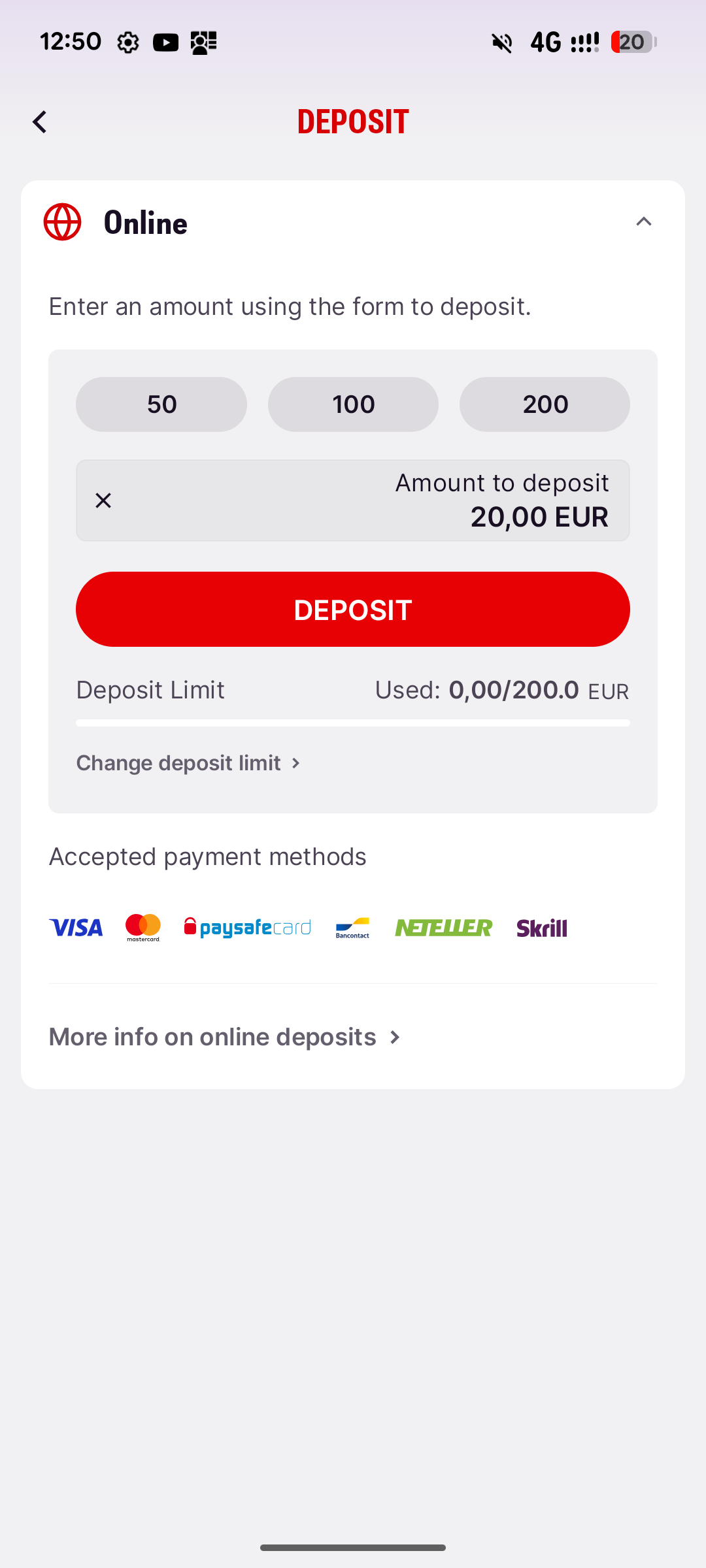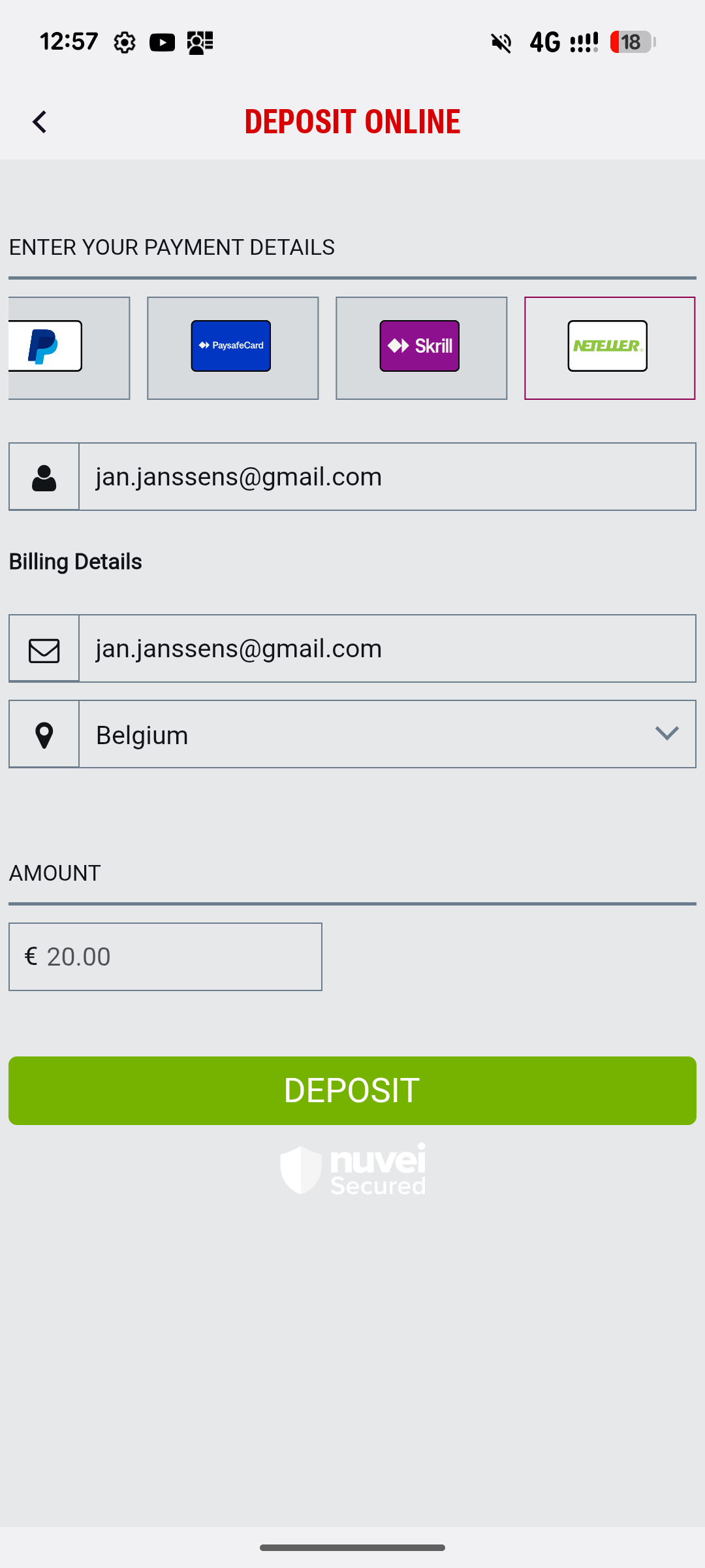 4. Click on the the Bancontact icon on top of the screen and enter your details. To confirm, click on ‘DEPOSIT’.