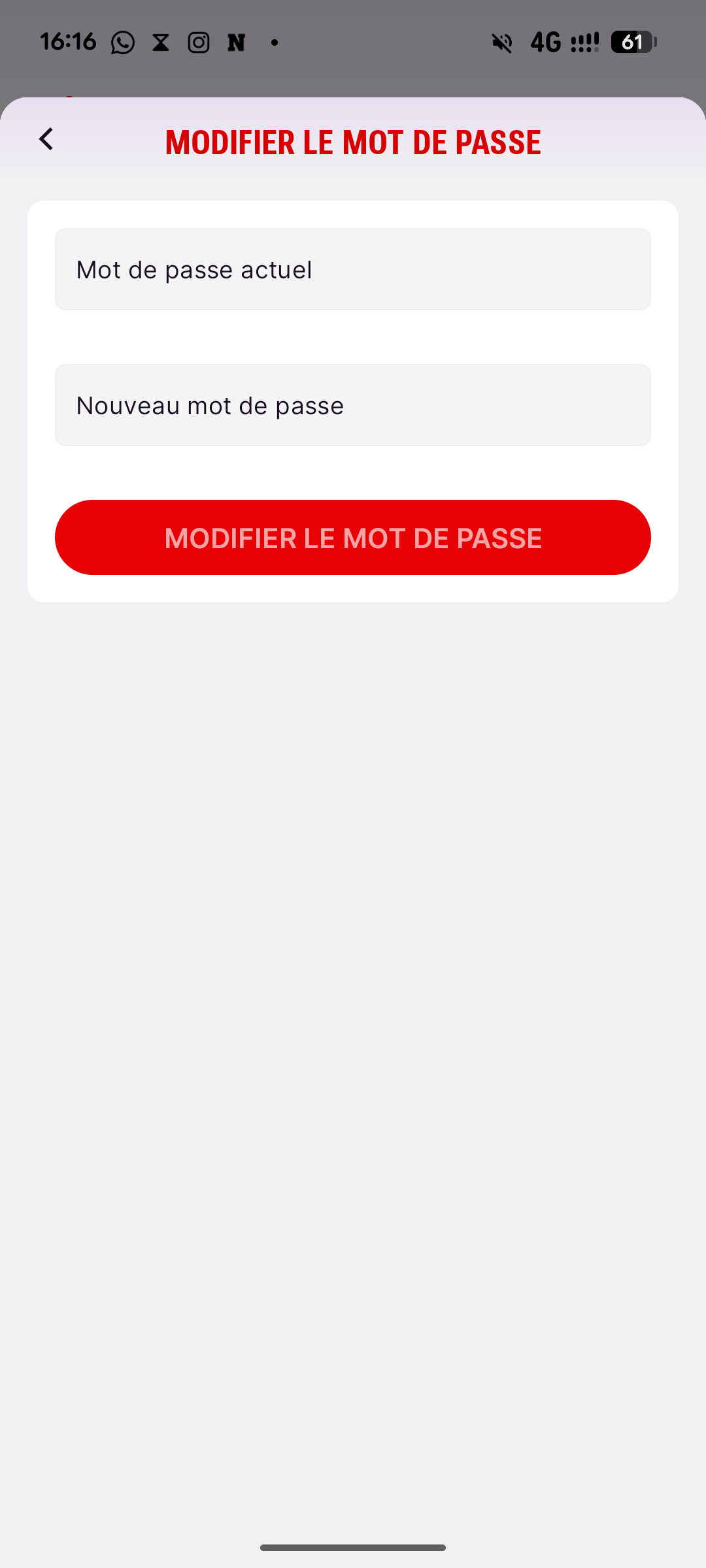 Saisis ton mot de passe actuel, puis ton nouveau mot de passe, et clique sur « MODIFIER LE MOT DE PASSE ».