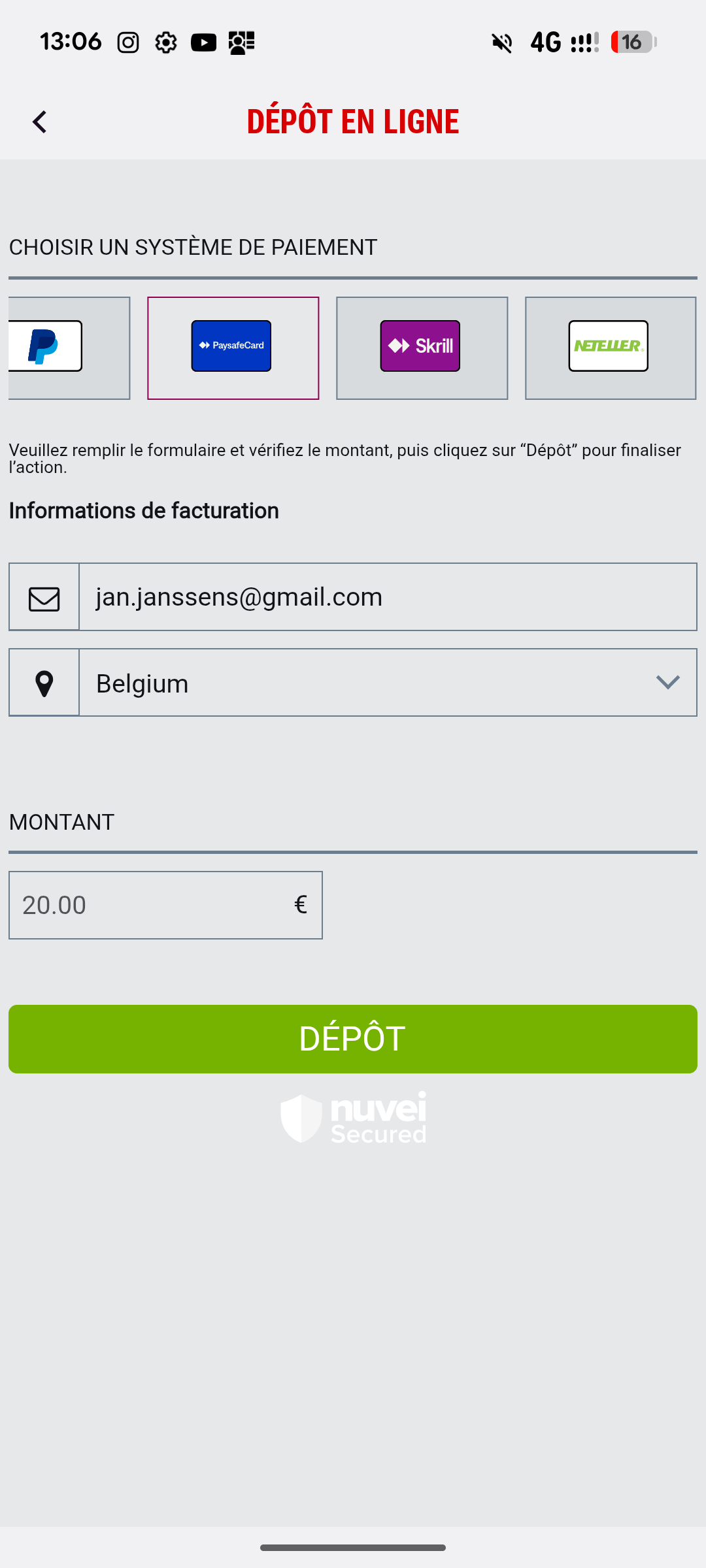 4. Clique sur l’icône PaysafeCard en haut de l’écran et saisis tes informations. Pour confirmer, clique sur “DÉPÔT”.