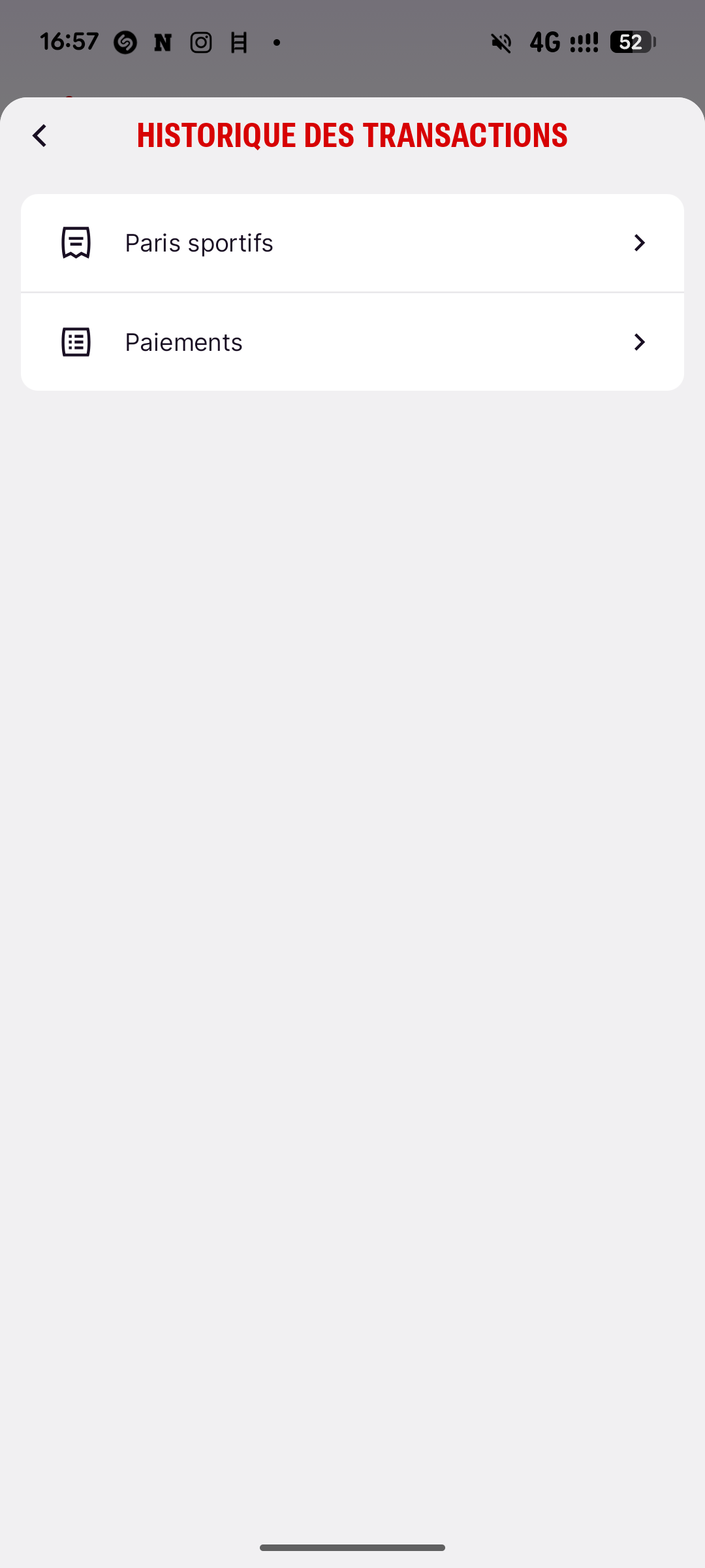 Ton historique de transactions est consultable uniquement par compte. Connecte-toi à ton compte Casino ou Sports, puis clique suis les étapes ci-dessous.