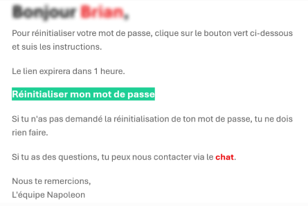 Recherchez un e-mail de NapoleonGames avec pour objet : "Réinitialiser le mot de passe."