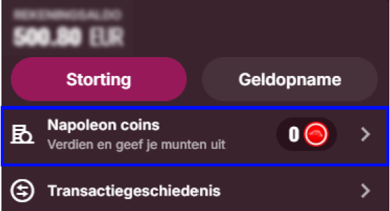 1. Ga naar het account menu en klik op “Napoleon coins”, boven “Transactiegeschiedenis”: