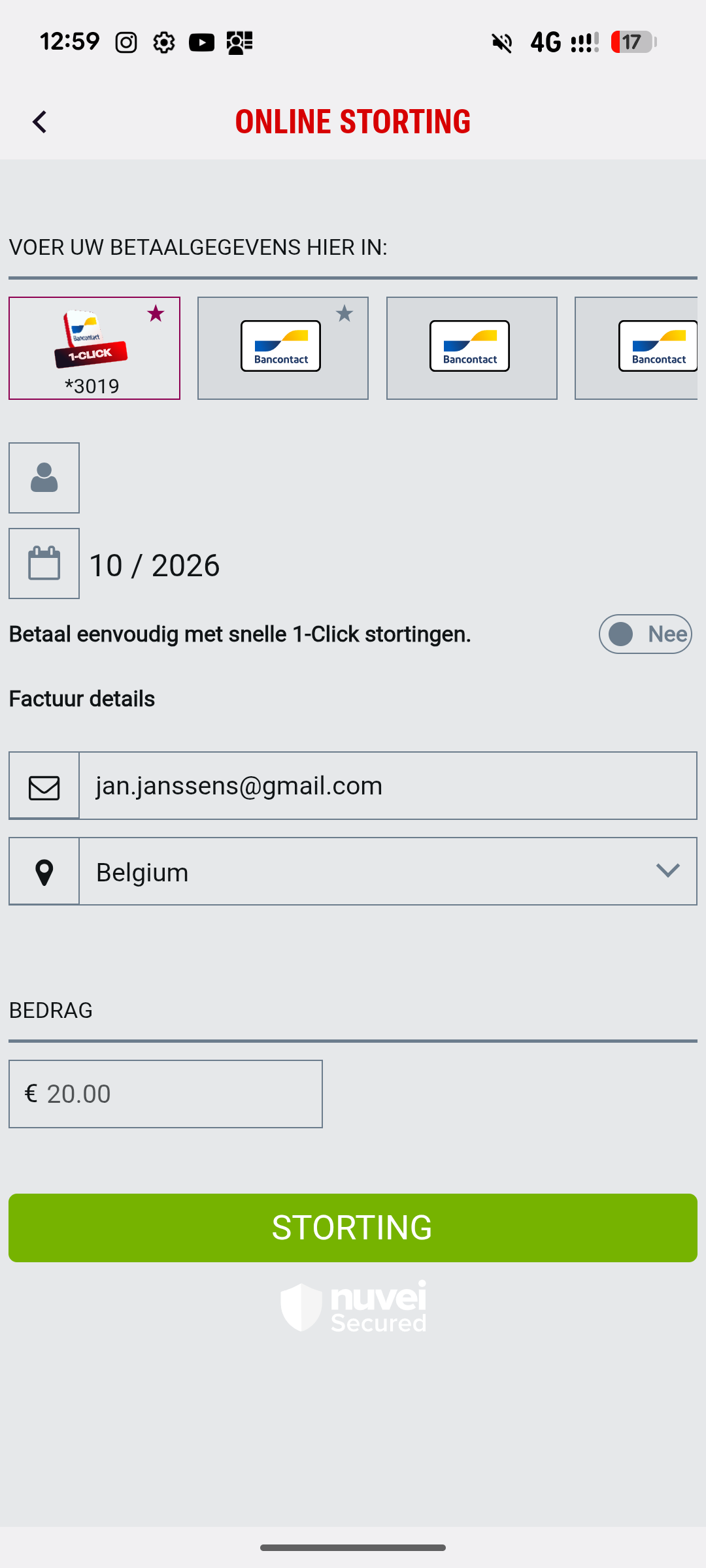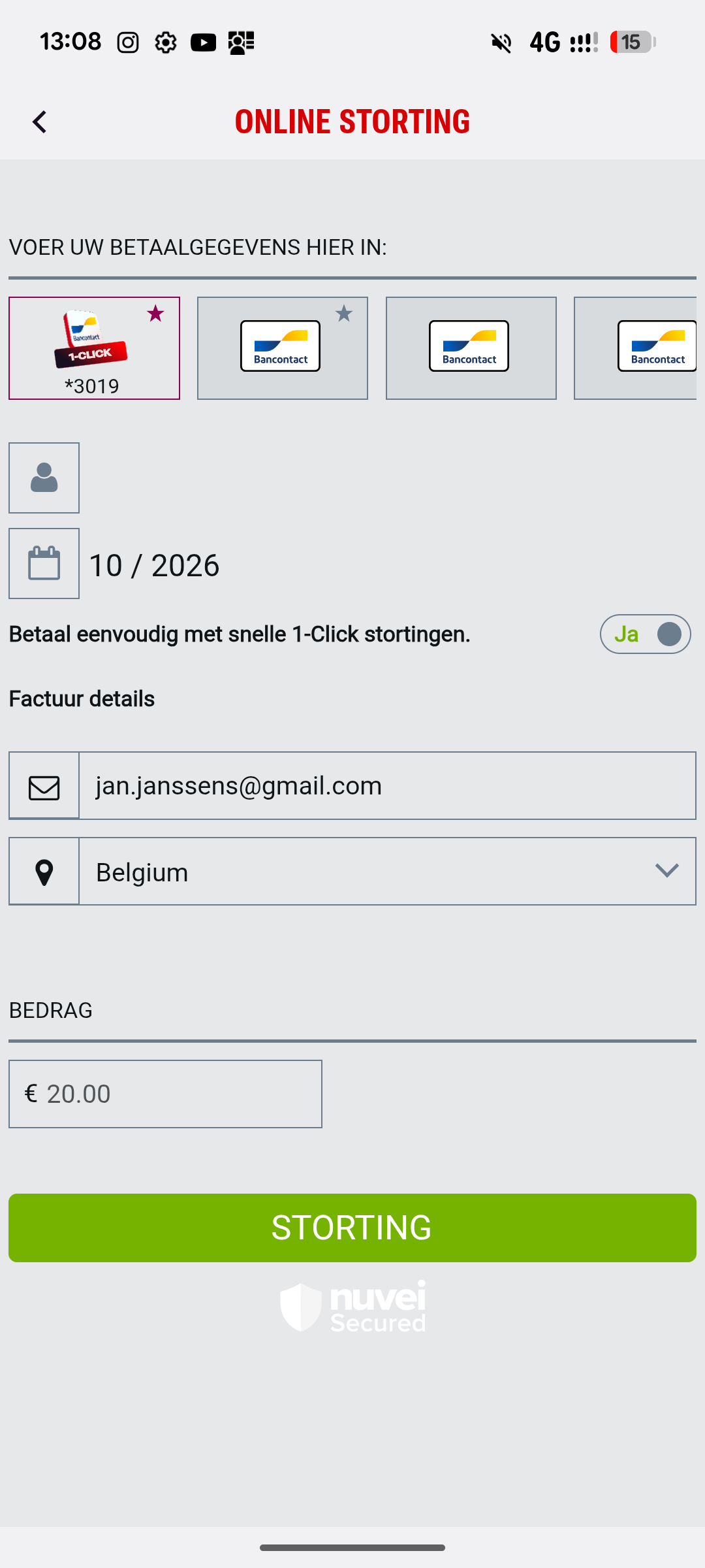 De storting wordt onmiddellijk uitgevoerd, zonder dat je je gegevens opnieuw moet invoeren.