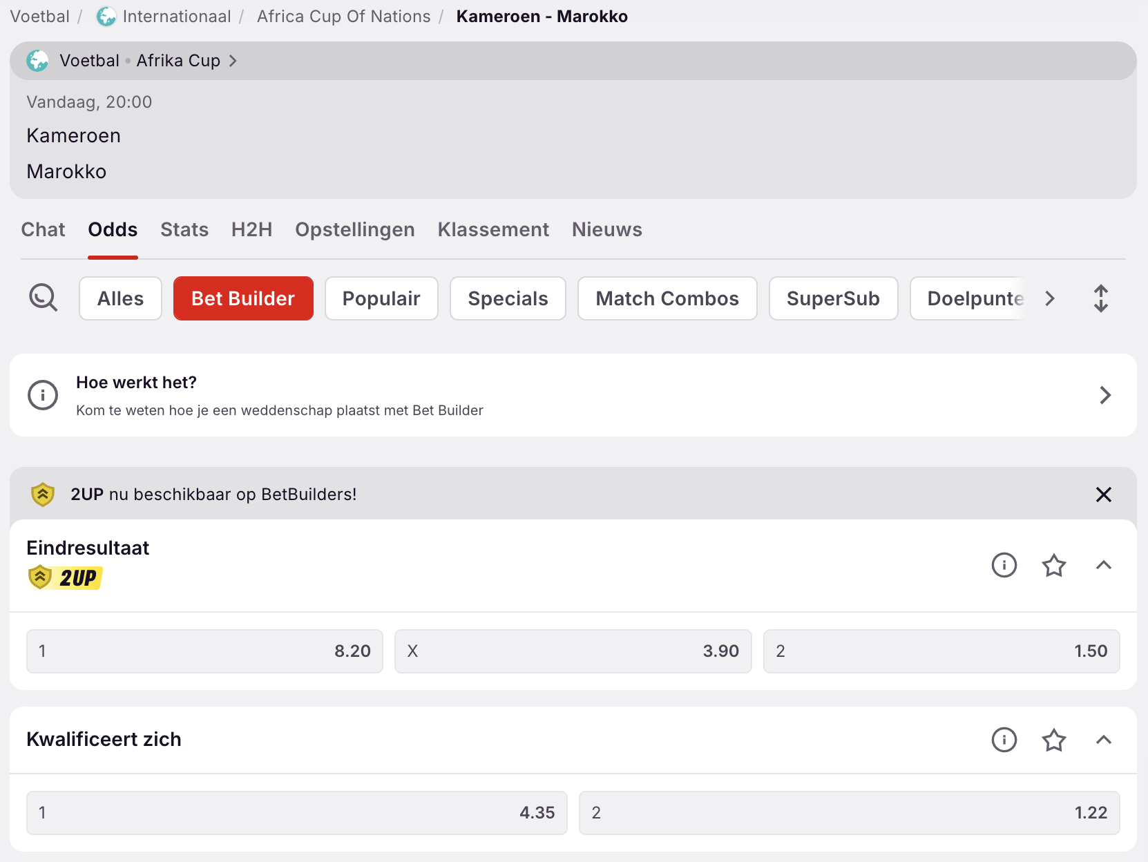 Geldt 2UP ook voor Bet Builder-selecties?