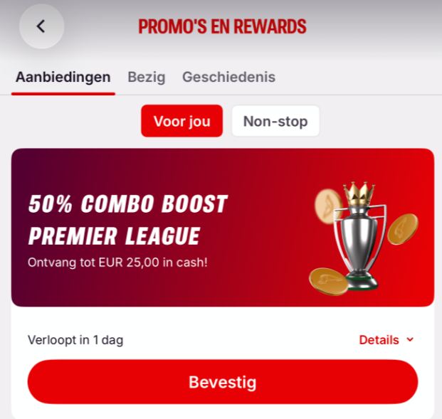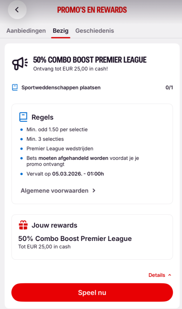 De uitbetaling gebeurt automatisch zodra je aan de voorwaarden van de promotie hebt voldaan.