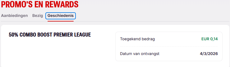 De uitbetaling gebeurt automatisch zodra je aan de voorwaarden van de promotie hebt voldaan. Je ontvangt hiervan een melding. Let op: de eerste weddenschap die wordt afgehandeld, telt mee voor de boost.